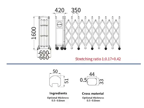 • Features of automatic retractable gate activities: the main body is assembled with aluminum profiles and nylon rubber pads, and wear-resistant PV sleeves are used