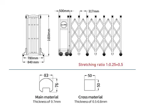 • Features of automatic retractable gate activities: the main body is assembled with aluminum profiles and nylon rubber pads, and wear-resistant PV sleeves are used