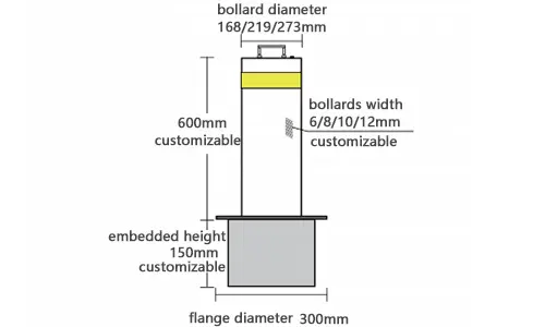 • Bollards body height: 600 mm (300-1500mm can be customized).