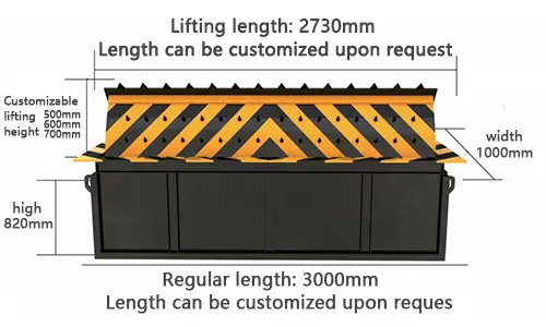 The road block machine has an overall carbon steel structure. It is used in prisons, military units, airports, oil fields, chemical plants, bank vaults and other places that require extremely high levels of on-site anti-collision equipment. The basic design has a maximum impact resistance of 500,000 kcal. It is equivalent to blocking the impact of a 10-ton truck traveling at 50 kilometers per hour. Can completely block the impact of a 7.5-ton truck traveling at 80 kilometers per hour.